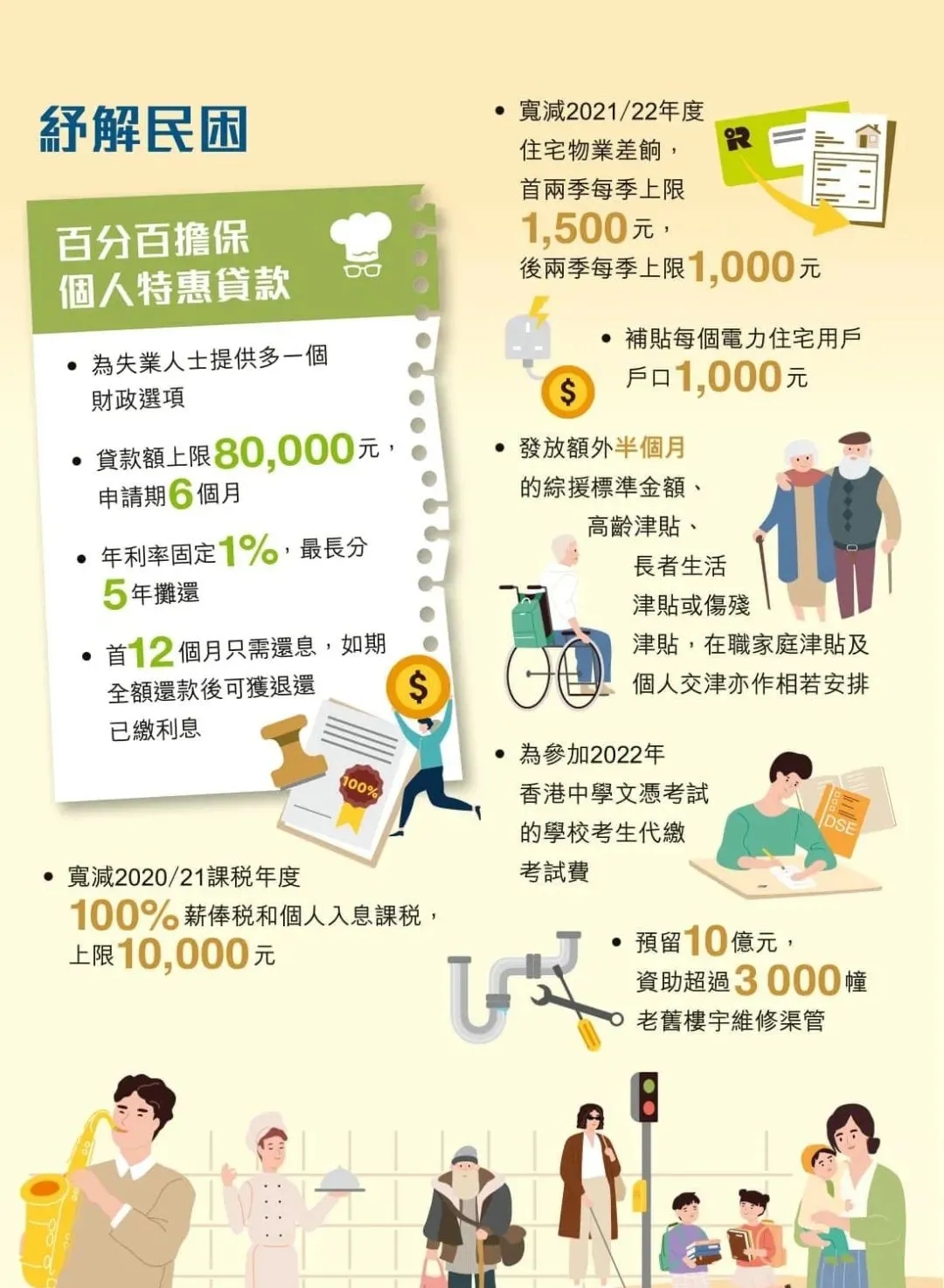— 寬減2021/22年度住宅物業(yè)差餉,首兩季每季上限1,500元,后兩季每季上限1,000元