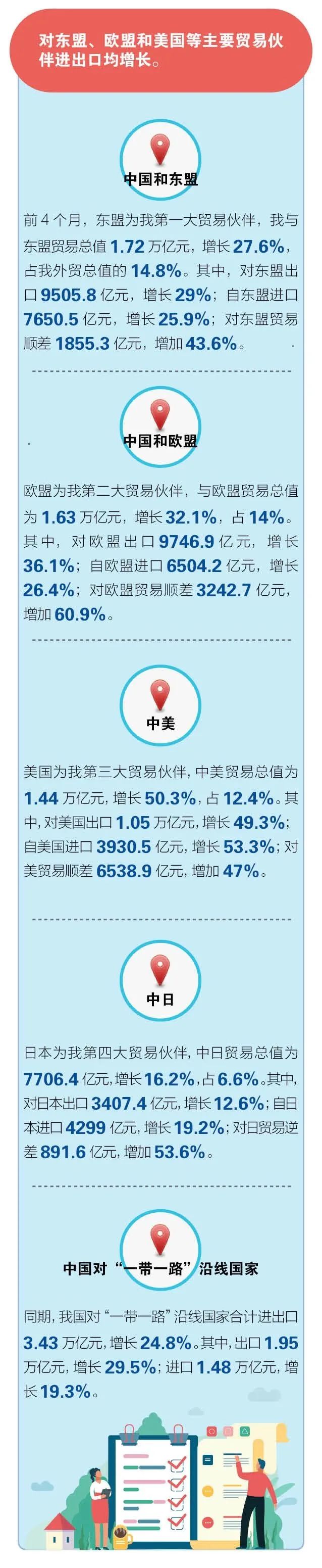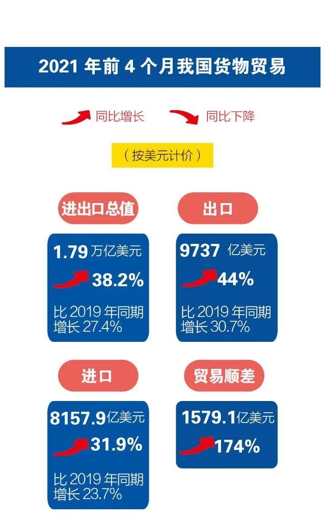 近日,海關(guān)公布數(shù)據(jù)顯示,2021年1—4月,我國(guó)外貿(mào)發(fā)展延續(xù)增長(zhǎng)勢(shì)頭,進(jìn)出口總值達(dá)11.62萬(wàn)億元人民幣,同比增長(zhǎng)28.5%,規(guī)模創(chuàng)歷史同期新高。那么今年前四個(gè)月,我國(guó)外貿(mào)發(fā)展具體呈現(xiàn)哪些特點(diǎn)?