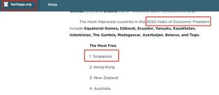 - 同時,傳統(tǒng)基金會(The Heritage Foundation)近日公布了2020年《經(jīng)濟自由度指數(shù)》報告顯示,中國香港保持了25年的全球最自由經(jīng)濟體制地位,今年被新加坡成功取代。