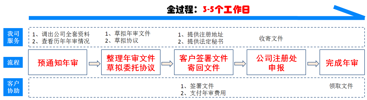 1)客戶確定準備年審后,我司按照文萊注冊處要求,準備所有申報年審的資料