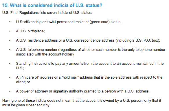 如果你只擁有其中一項標(biāo)記,并不意味著你的賬戶符合“美國人身份”,但會提醒國稅局必須給予更仔細(xì)的審查。