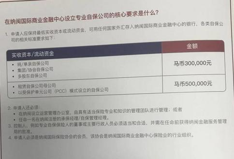 附:納閩國(guó)際商業(yè)金融中心設(shè)立專(zhuān)業(yè)自保公司的核心要求: