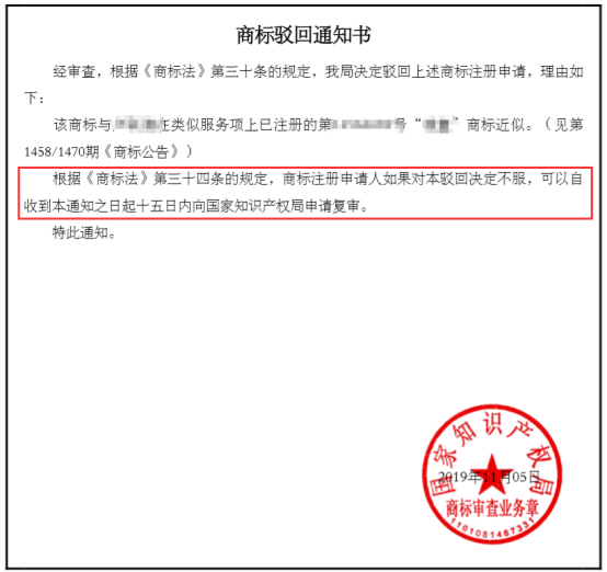 根據(jù)《商標(biāo)法》第三十四條的規(guī)定,商標(biāo)注冊(cè)申請(qǐng)人如果對(duì)本駁回決定不服,可以自收到本通知之日起十五日內(nèi)向國(guó)家知識(shí)產(chǎn)權(quán)局申請(qǐng)復(fù)審。